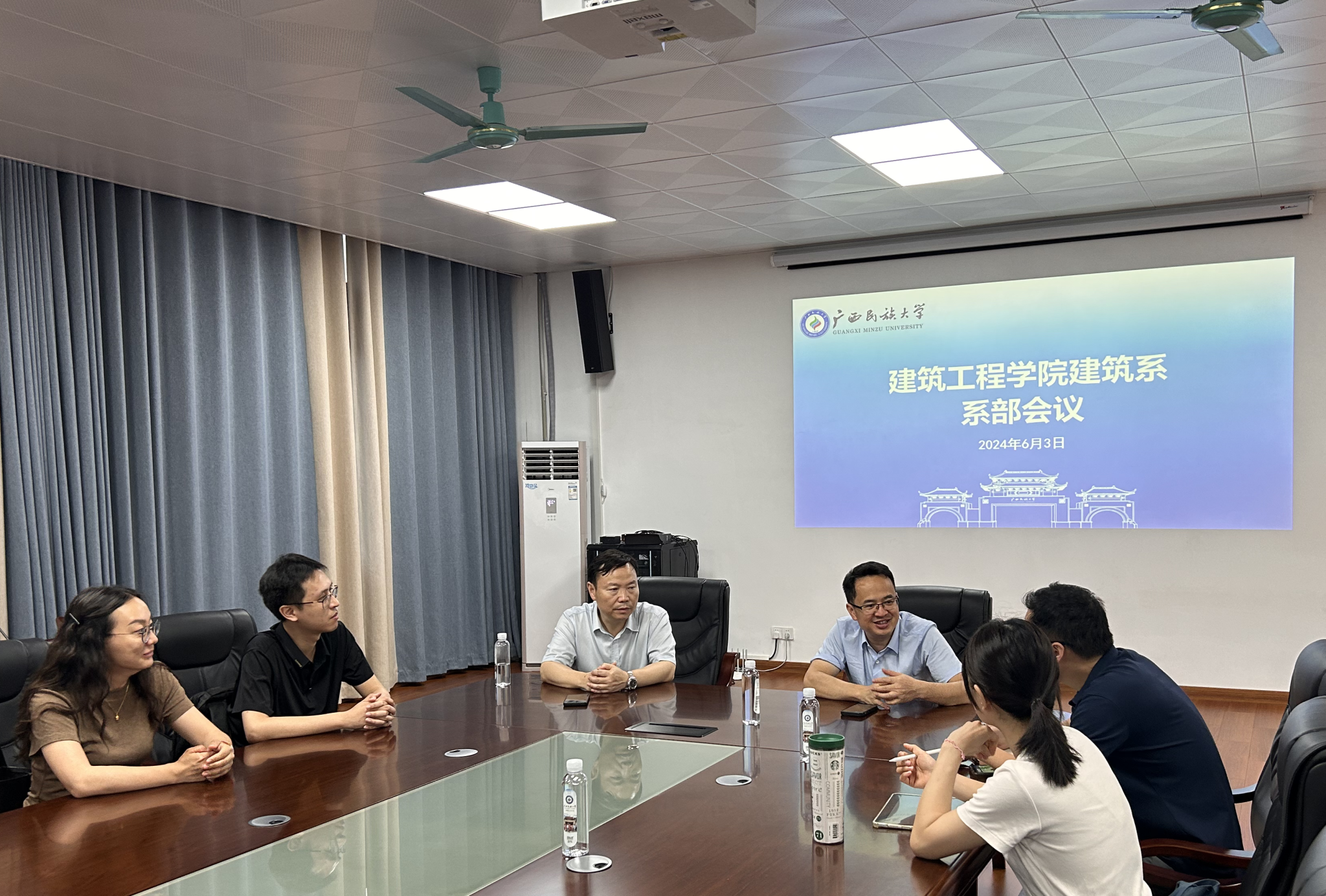 公司建筑学系于6月3日在508会议室组织召开系部会议,此次会议由经理助理何华斌主持,经理覃英宏及系部教师参与会议。